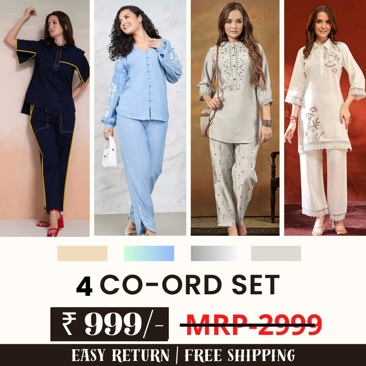 Upgrade your daily wardrobe flow with this four-set coordinated outfit bundle designed for women who want adaptable styling and dependable comfort from one selection. This pack delivers four harmonized co-ord combinations crafted for breathable wear and flexible use — suitable for routine outings, travel styling, or casual occasions.