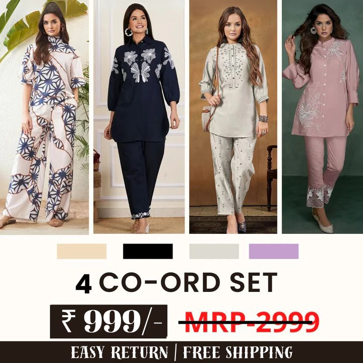 Enhance wardrobe flexibility with this four-set coordinated outfit kit crafted for women who value convenience and adaptable styling in one bundle. This collection provides four matched co-ord combinations engineered for comfort and versatile wear — ideal for routine use, travel plans, or casual occasions.