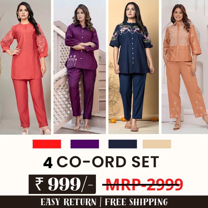 Upgrade daily outfit planning with this four-set coordinated bundle designed for women seeking convenience and flexible styling in one purchase. This collection includes four ready-matched co-ord combinations crafted for breathable comfort and adaptable wear — suitable for everyday routines, travel, or casual outings.