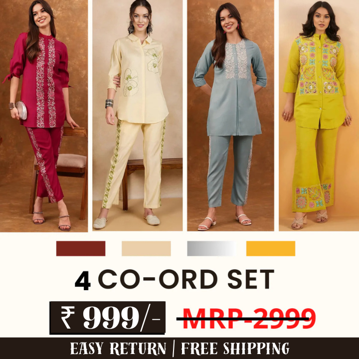 Transform your daily outfit rotation with this four-set coordinated outfit pack designed for women who want flexible styling and reliable comfort from one purchase. This collection delivers four thoughtfully paired co-ord combinations crafted for breathable wear and adaptable use — perfect for regular routines, travel days, or casual styling.