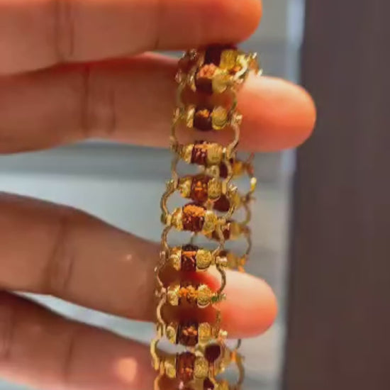 Handcrafted with authentic Rudraksha beads and finished with gold-plated links, this bracelet symbolizes strength, peace, and divine energy.