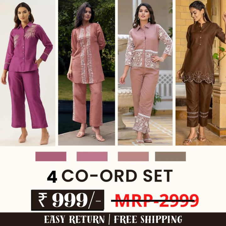 Make everyday styling easier with this four-set coordinated outfit package created for women who want flexibility and convenience from a single purchase. This collection provides four ready-matched co-ord combinations engineered for breathable comfort and adaptable usage — suitable for daily routines, travel, or casual meetups.