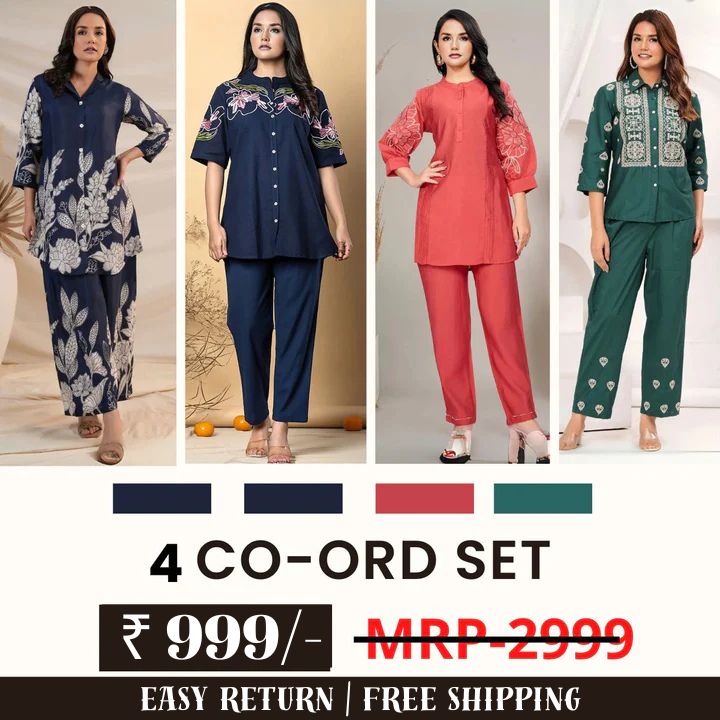 Simplify your daily outfit decisions with this four-set coordinated fashion pack designed for women seeking variety, ease, and practicality in one selection. This bundle delivers four ready-matched co-ord outfits crafted for comfort and adaptable wear — suitable for casual use, travel styling, or daily rotation.